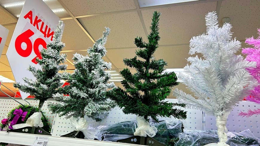 Здесь можно не спешно, без суеты и ажиотажа, выбрать искусственную ёлочку. Полки пестрят разноцветными шарами, гирляндами и сверкающими украшениями.